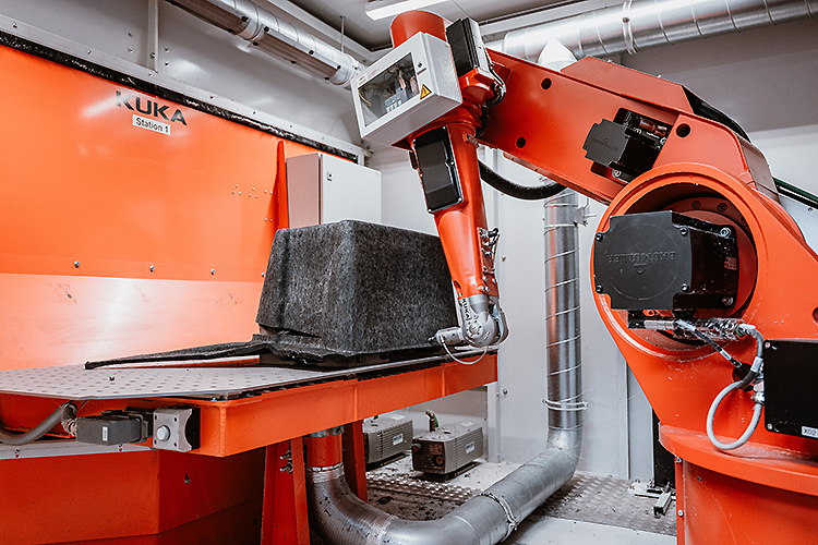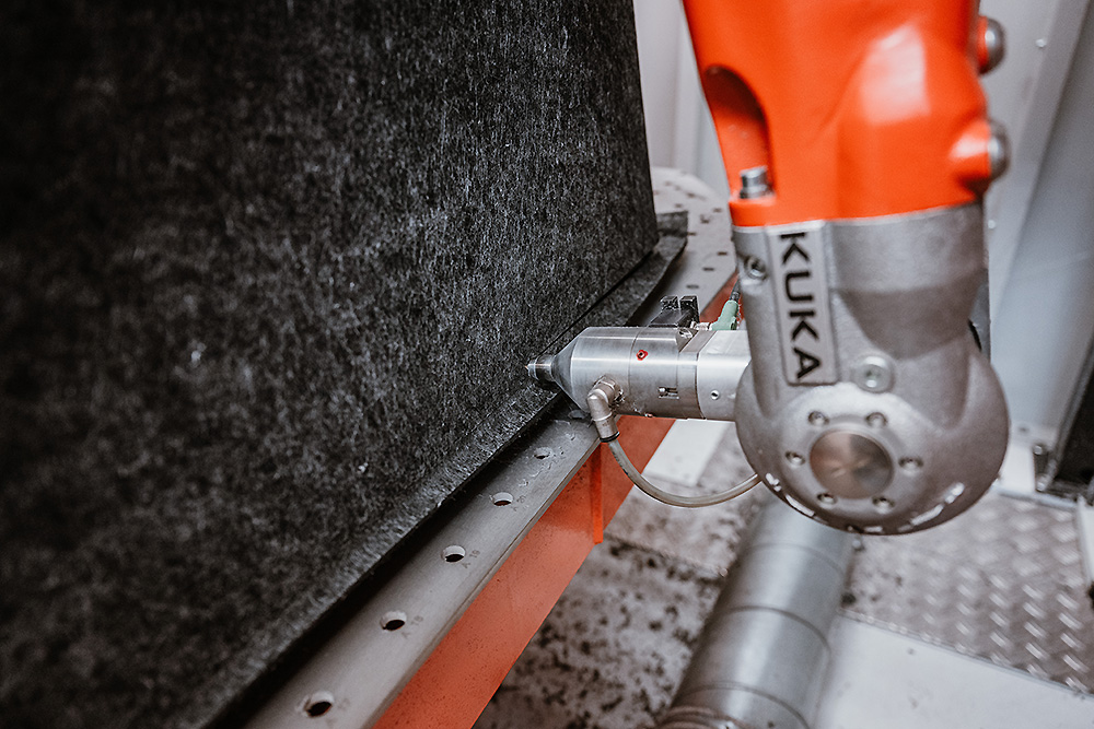 Bei 3D Composite setzen wir auf zuverlässige Robotertechnik von KUKA und leistungsstarke Laserquellen von Coherent. Ergänzt wird diese Hardware durch eine moderne, parametrische Roboterprogrammierung, mit der wir die Schnittpfade präzise steuern und für jedes Bauteil optimal anpassen können. So stellen wir eine konstant hohe Qualität und Wiederholgenauigkeit im gesamten Fertigungsprozess sicher.