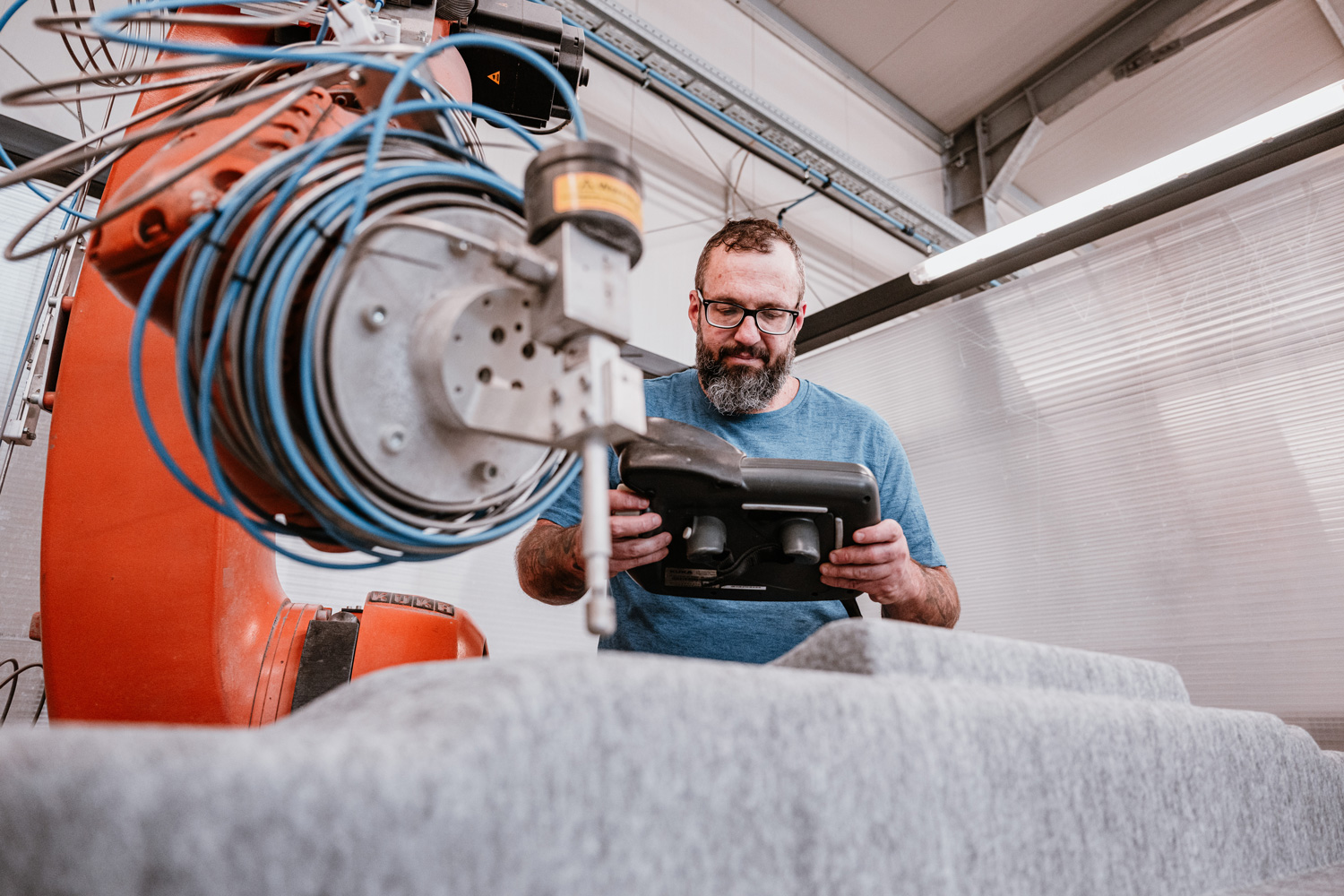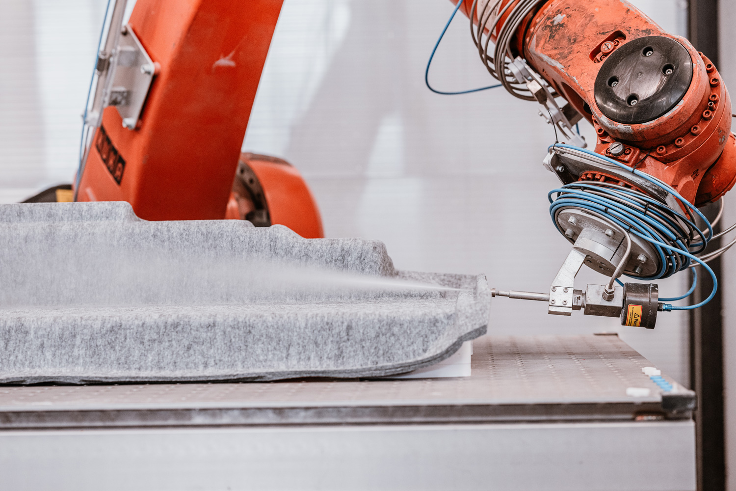 Für eine perfekte Passform unserer Formteile arbeiten wir eng mit dem Kunden zusammen. Seine Produktdaten übersetzen wir mit unserer Software in das 3D-Modell der Formen, mit denen wir das Produkt am Ende fertigen. Dabei müssen wir selbstverständlich das gewünschte Material und seine spezifischen Eigenschaften wie Thermoelastizität, Schichtdicke und viele andere Faktoren berücksichtigen. Das gilt auch für die Technologie, mit der wir die Formteile aus den Presswerkzeugen holen und mit denen wir sie zuschneiden und versäubern. Auch hier nutzen wir die jeweils für das Material und für den Workflow optimale Technologie, die wir selbst entwickelt haben.
