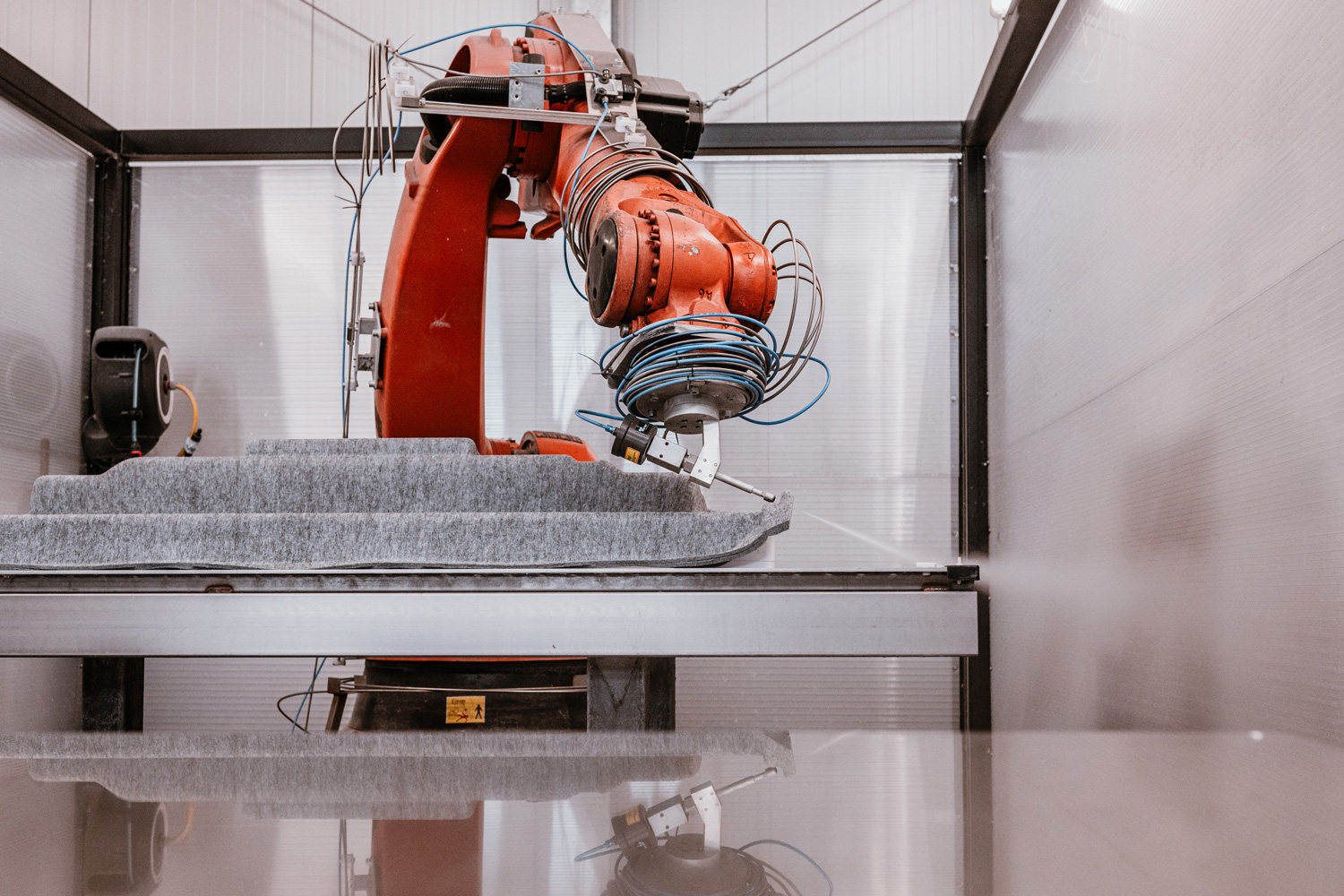 Die Größe des von Ihnen gewünschten Formteils wird einerseits durch die Größe der Form, andererseits durch den Aktionsradius des Beschnittroboters begrenzt. Unsere Beschnittroboter sind so groß, dass sie sogar große Dachhimmel für Wohnmobile und LKW problemlos und präzise ausschneiden können.