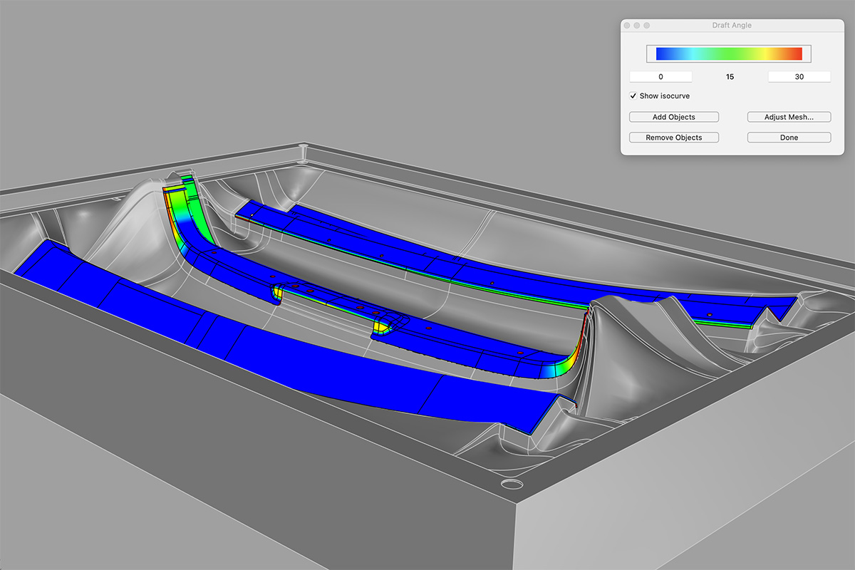 Durch den engen Austausch mit Ihren Entwicklungsabteilungen gestalten wir Werkzeuge so, dass sie exakt zur Einbausituation und zu den funktionalen Anforderungen Ihres Bauteils passen. Dazu gehören klar definierte Materialzonen, präzise Konturen, Auflagen, Taschenformen und integrierte Funktionsbereiche. Mit modernen CAD Systemen simulieren wir das Formverhalten und optimieren das Werkzeug bereits vor dem ersten physischen Muster.